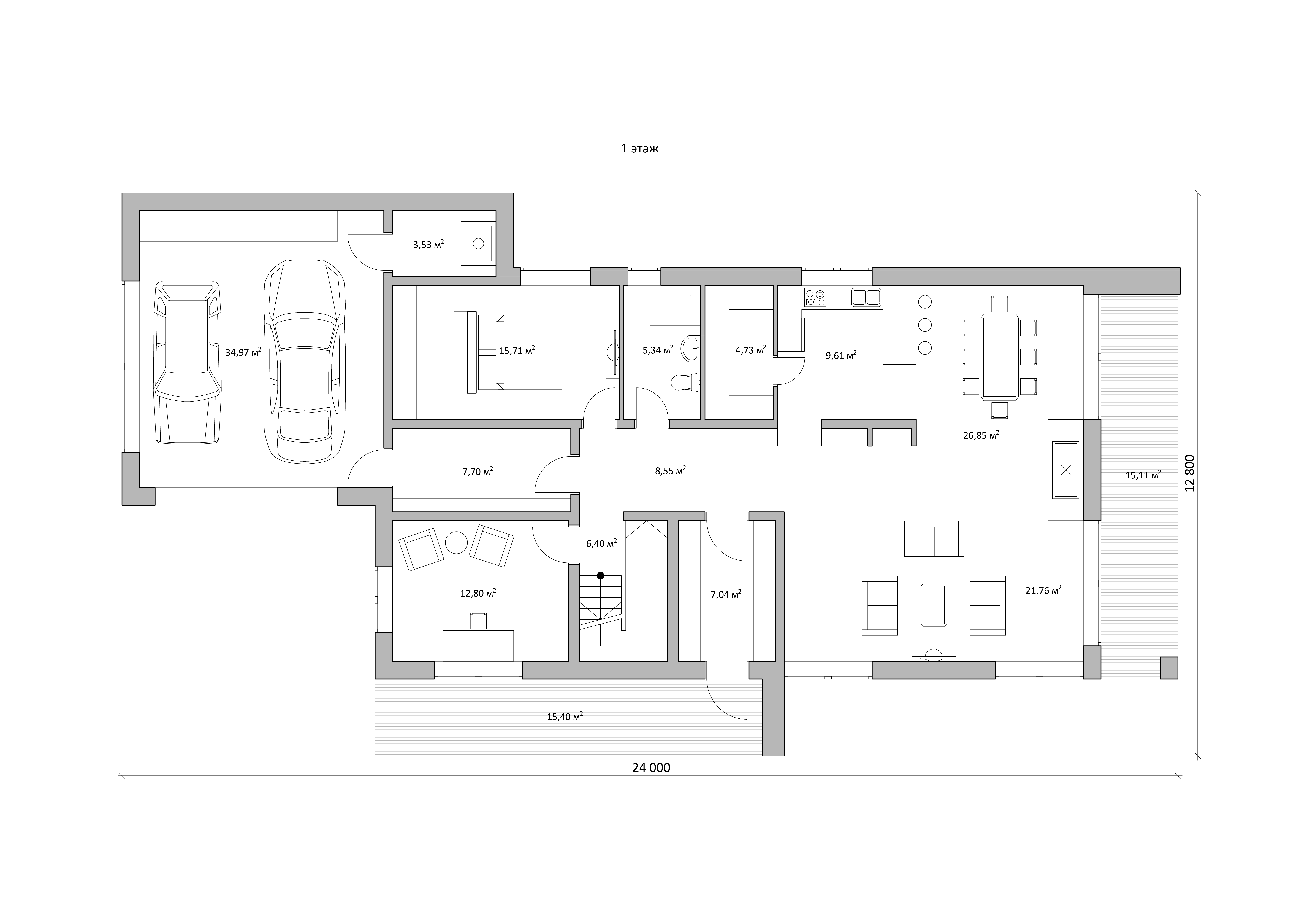 Самый просторный дом в нашей серии домов-амбаров со встроенным гаражом на 2 машины. Помимо чарующего внешнего вида, этот дом порадует вас рациональной планировкой. На первом этаже находятся кухня-гостиная со вторым светом, спальня, кабинет, хозяйственные помещения, а на втором расположились спальни и малая гостиная для приватного отдыха.